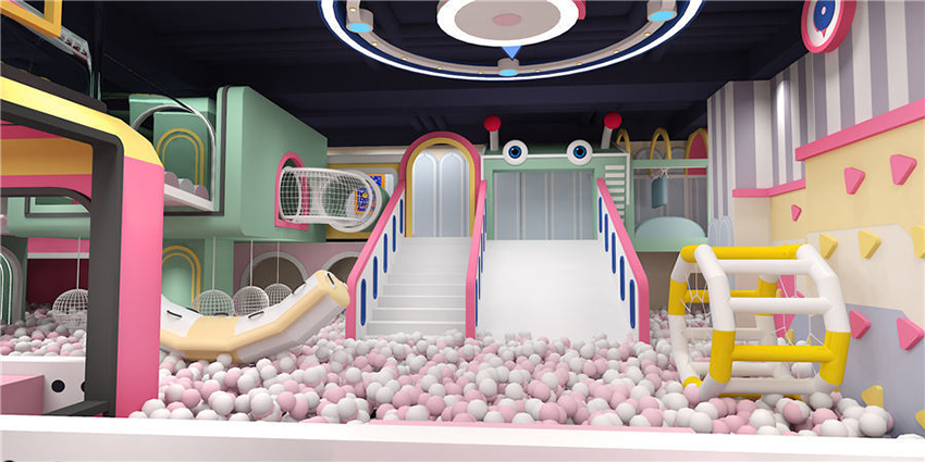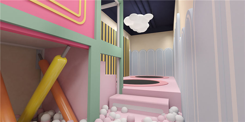 項目主色調以鐵綠色為主,場地空間布局層次分明、造型新穎規劃合理。以茉莉配色為設計理念,支持馬卡龍系列定制。內部游樂項目配置豐富齊全,包括滑滑梯、球池、椰子樹、彈跳迷宮、沙池、小蹦床等項目,造型設計活潑可愛充滿卡通風格,外觀色彩五彩繽紛能夠令孩子產生親切感,項目娛樂性互動性較強,清新而又舒適的游玩環境,能夠使孩子在玩樂中喚醒對美的渴望。